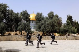 [Israeli security forces run during clashes with Palestinians at the compound that houses Al-Aqsa Mosque, known to Muslims as Noble Sanctuary and to Jews as Temple Mount, in Jerusalem’s Old City May 21, 2021. REUTERS/Ammar Awad]