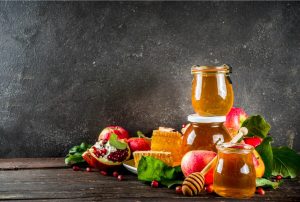 Another custom is to eat a rimon (pomegranate). A pomegranate has many seeds in it. Each of them stands for one selfish desire. Eating them stands for correcting them from selfishness to giving, which gives us a feeling of romemut (elation, note the similarity to the word rimon).