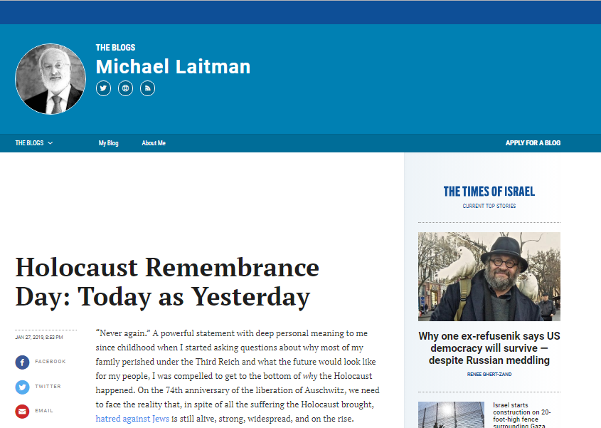 “Never again.” A powerful statement with deep personal meaning to me since childhood when I started asking questions about why most of my family perished under the Third Reich and what the future would look like for my people, I was compelled to get to the bottom of why the Holocaust happened. On the 74th anniversary of the liberation of Auschwitz, we need to face the reality that, in spite of all the suffering the Holocaust brought, hatred against Jews is still alive, strong, widespread, and on the rise.