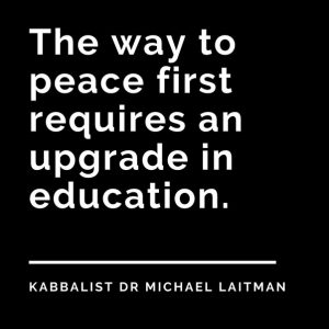 Therefore, the way to peace first requires an upgrade in education. We first need to understand what peace is and why we are at war. Our war is bigger than what nations and armies enter into at various times, but according to our nature, we are all in a constant war and struggle with each other. We thus need to learn about nature and human nature, to understand the extent in which we are egoists by nature, how we each wish to use other people and nature for personal gain. Also, we need to see how our egoistic nature is constantly growing, and the more humanity develops, the crueler we become, wishing to succeed on account of other people and nature. We need to look no further than history’s unfolding events to see its proof.