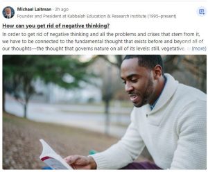 In order to get rid of negative thinking and all the problems and crises that stem from it, we have to be connected to the fundamental thought that exists before and beyond all of our thoughts—the thought that governs nature on all of its levels: still, vegetative, animate and human.