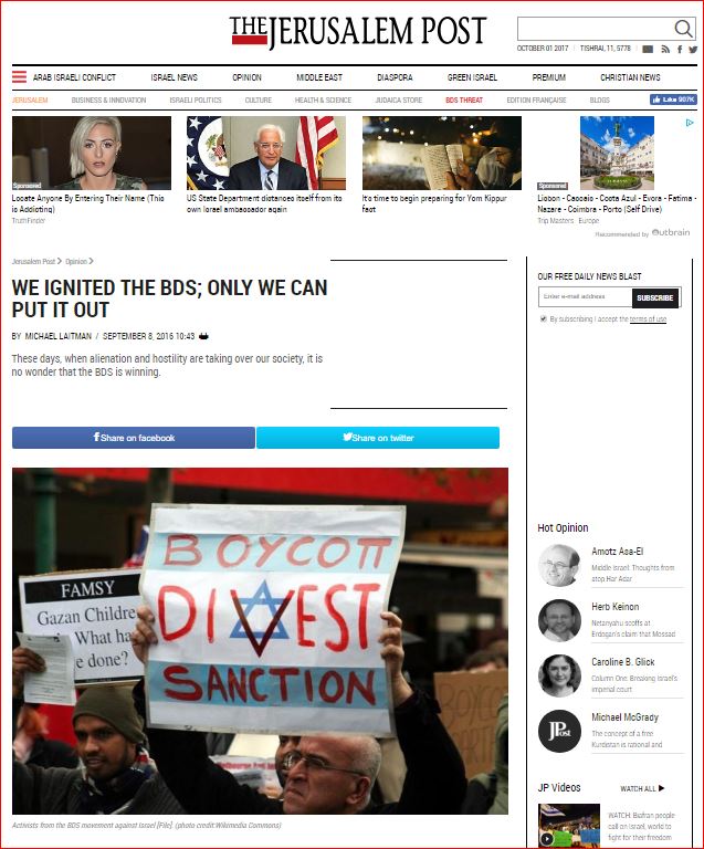 There is no doubt that the Boycott, Divestment, and Sanctions (BDS) movement has become a sore spot that Israel can no longer sweep under the carpet. There are efforts to arrest its progress, such as in Illinois and New York, but by and large, Israel is losing and the BDS is taking over.