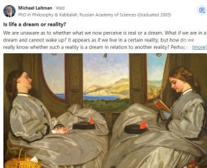Moreover, we spend about a third of our lives sleeping in our current reality. How, then, do we know whether or not we are sleeping now in relation to a higher reality?