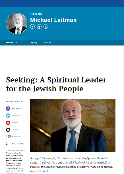Among all the powerful, charismatic and innovative figures in the Jewish world, it is still missing a great, unselfish leader who is above materialistic interests, one capable of elevating Israel to be worthy of fulfilling its spiritual role in the world.
