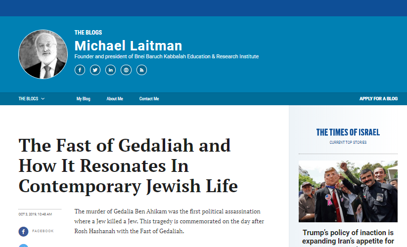 3,000 years have passed since then, and not a lot has changed in the 2019 model of the “Kingdom of Judea.” The people of Israel are divided into camps and tribes with different conceptions and viewpoints. Polarization and division are the order of the day. Any sort of leadership is met with derision, and unfounded hatred abounds. The Fast of Gedaliah that is commemorated the first day out of the ten days of repentance between Rosh Hashanah and Yom Kippur is a day of deep soul searching in which we should find out what can unite us as a people.