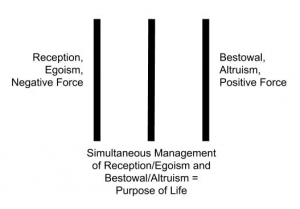 In principle, there are two forces in nature: reception (egoism, negative) and bestowal (altruism, positive). We are born and raised solely on the force of reception, which is expressed in us as egoism: the desire to enjoy at the expense of anything or anyone outside of oneself.