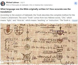 - Kabbalah – a scientific language that is closest to the spiritual roots.