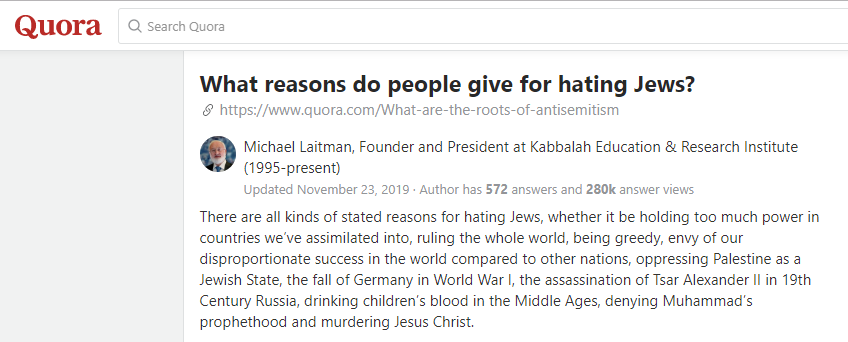 many people give for Jew hatred are preceded by the sensation of hatred in and of itself. As Kabbalist Rav Yehuda Ashlag (Baal HaSulam) writes in his article The Solution