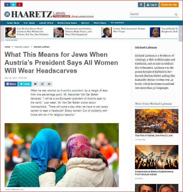 When he was elected as Austria’s president, by a margin of less than one percentage point, Mr. Alexander Van Der Bellen declared, “I will be a pro-European president of Austria open to the world.” Last week, Mr. Van Der Bellen stated about Islamophobia: “There will come a day when we have to ask every woman to wear a headscarf. Every woman! Out of solidarity with those who do it for religious reasons.”