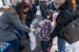 [New York Cares volunteers in partnership with Together We Can local non-profit organization and Assemblywoman Catalina Cruz distribute holidays toys and winter coats in Corona, Queens in New York on December 19, 2020. (Photo by Lev Radin/Sipa USA)]