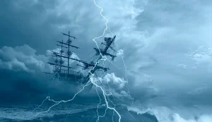В рассказе, отказ Ионы от своей миссии и его бегство на корабле, вызвало бурю на море, и судно чуть не утонуло. В самый разгар шторма Иона отправился спать, как будто суматоха его не касается, оставляя матросов на произвол судьбы. Постепенно они начали подозревать, что кто-то из них является причиной шторма. Они бросили жребий и обнаружили, что причиной является Иона, единственный еврей на борту корабля.