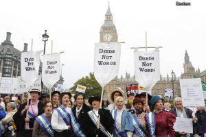 Женщины всех сословий были заняты домом, мужем и детьми, их жизнь была наполнена бесчисленными заботами о домочадцах. И только в конце 19 века женщины задумались о своих правах. И стали решительно за них бороться. Женщины устраивали демонстрации и стояли на улицах с плакатами, садились на рельсы и даже приковывали себя к воротам, требуя избирательных прав. Женщины устремились в политику, бывшую до того времени исключительно мужским занятием. Первыми избирательное право получили совсем недавно, в 1893 году 21-летние женщины Новой Зеландии. Затем — женщины Австралии — в 1902 году. Дальше – больше, в течение двадцатого века парламенты практически всех стран мира перестали быть исключительно мужскими собраниями. В 2011 году это произошло и в Саудовской Аравии. С этого времени и до сих пор единственным «форпостом женской дискриминации» остается маленькое европейское государство Ватикан.