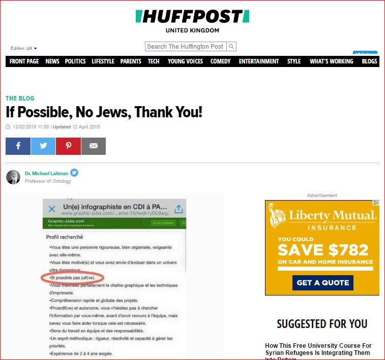 The ad, as it appears in The Algemeiner If the atrocities that took place less than a month ago in France were not enough to awaken those among us who are still blissfully oblivious to anti-Semitism, there comes this…
